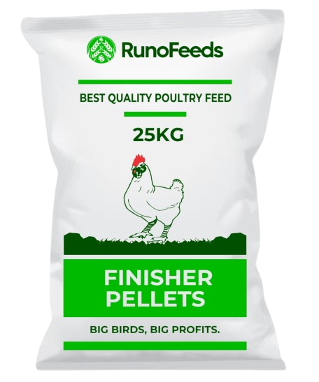 RunoFeeds Finisher pellets are specialized poultry feed designed for broiler chickens during their final growth stage, usually from 5–6 weeks of age until market weight (around 8 weeks). At this stage, the birds require a diet that promotes rapid weight gain, muscle development, and efficient feed conversion, while maintaining meat quality and health.