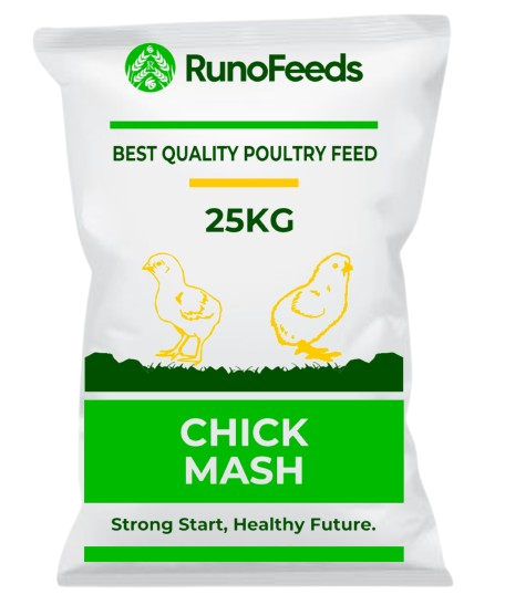 RunoFeeds Chick mash is a specially formulated poultry feed designed for day-old chicks up to about 8 weeks of age. It is a finely ground mixture that provides the essential nutrients needed for rapid growth, strong immunity, feather development, and early skeletal formation. Because chicks have delicate digestive systems, RunoFeeds chick mash is soft, easily digestible, and balanced with the right proportion of energy, protein, vitamins, and minerals.